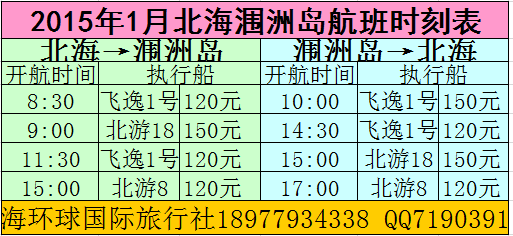 2015年一月份潿洲島航班時刻表(正常班點(diǎn)):