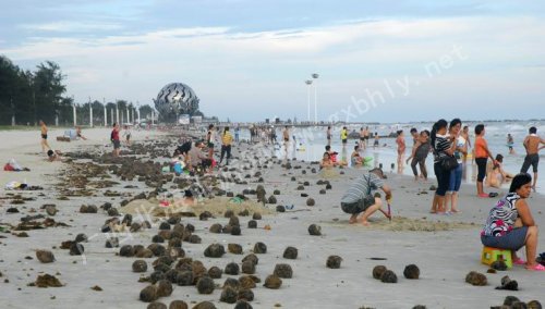 一位負(fù)責(zé)人說,如此大規(guī)模的海里物品被沖上來的情況,近幾年有過類似情況,一次是生活垃圾,一次是油污。08年臺(tái)風(fēng)過后,在金海灣一帶發(fā)現(xiàn)了幾百個(gè)海上用的警戒線浮球。但是“椰子還是第一次見”。工作人員覺得這一次出現(xiàn)大量椰子很奇怪,因?yàn)樽罱]有臺(tái)風(fēng)或是大的自然災(zāi)害。
