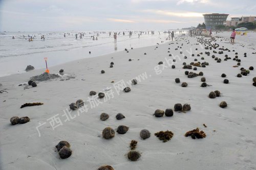 “二十幾年來第一次有那么多椰子被沖上來!便y灘景區(qū)的一位工作人員介紹。這樣的情況已經(jīng)有好幾天了,主要是出現(xiàn)在北海西南方向的海灘,從金海灣到銀灘的沙灘上都有發(fā)現(xiàn),估計(jì)僑港和三千海也有。