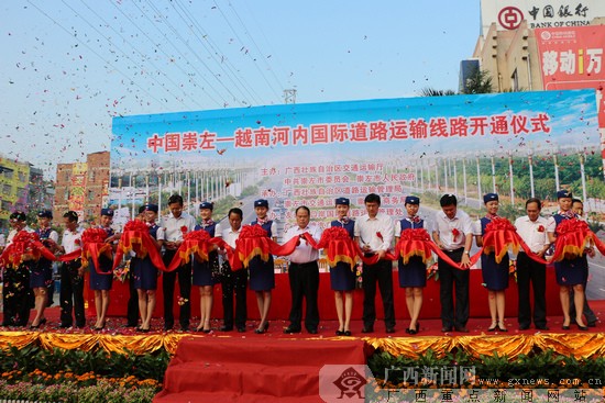 據(jù)報(bào)道18日上午,中國(guó)崇左至越南河內(nèi)國(guó)際道路運(yùn)輸線路開通儀式在崇左客運(yùn)站廣場(chǎng)舉行,這標(biāo)志著崇左邊境貿(mào)易、商貿(mào)物流等第三產(chǎn)業(yè)發(fā)展進(jìn)入了一個(gè)新階段。