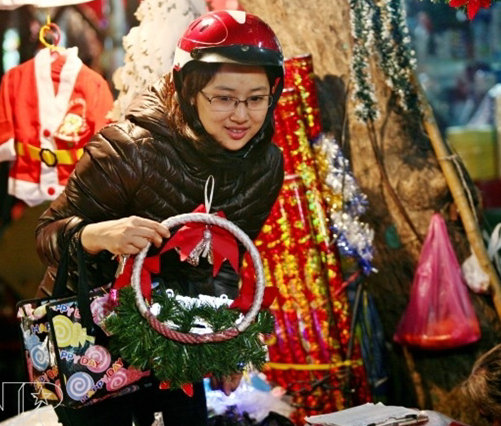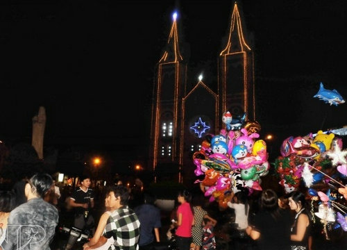圣誕節(jié)期間,白天,小販們會叫賣著各式各樣的圣誕用品。街道上,也有成群結(jié)隊(duì)的、長著金發(fā)碧眼的老外走過。一到夜晚,大教堂便高懸華燈,吸引所有人的目光。人們在主教的帶領(lǐng)下用越南語吟唱著圣經(jīng),氣氛肅穆而溫暖。