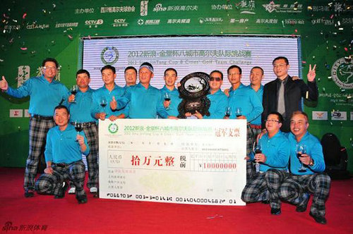 11月28日,由四川省高爾夫球協(xié)會、新浪網(wǎng)、金堂縣房地產(chǎn)業(yè)協(xié)會、至尊旅程以及觀嶺球會共同主辦的2012“新浪-金堂杯”八城市高爾夫隊際挑戰(zhàn)賽,在四川金堂藍光·觀嶺高爾夫球會隆重開賽。來自北京、上海、沈陽、南京、深圳、武漢、成都以及北海等八座城市的八支高水平業(yè)余高爾夫球隊,總計百余名高爾夫球友,為著各隊的榮譽展開了為期兩天的激烈角逐。在全國知名球隊高手如云的較量中,最終北海高協(xié)和安隊以總成績1044桿(385-659)奪得了冠軍,并獲得了10萬元的球隊發(fā)展基金,賽事主辦方還特制了富含四川傳統(tǒng)文化的蜀繡獎杯作為紀(jì)念。對于本賽事及北海高協(xié)和安隊的奪冠消息,新浪網(wǎng)及《成都商報》等主流媒體均作了頭版頭條報道。