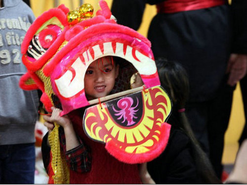 從初一開始,越南人還可以上街看舞獅,因?yàn)榕c中國(guó)一衣帶水,越南的舞獅與中國(guó)的并無二致。孩子們總是舞獅的最忠實(shí)擁躉,因?yàn)楠{子的嘴里總能不斷地吐出“紅包”來。