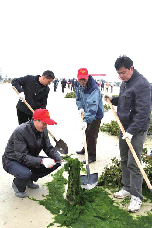 200多名來自銀灘鎮(zhèn)機關(guān)和市海洋局機關(guān)的工作人員,拿著鐵鍬、掃帚等工具,有的在清掃海灘上的垃圾,有的在小心翼翼地除掉掛在紅樹林上面的布條和垃圾袋……據(jù)介紹,此次活動是銀灘大冠沙紅樹林環(huán)境清理修復(fù)工作的一部分,該活動從去年9月份開展,目前已收到了良好的效果。主辦單位希望通過這次活動,使更多市民意識到保護銀灘環(huán)境的重要性,不要在游玩的時候隨便丟垃圾。
