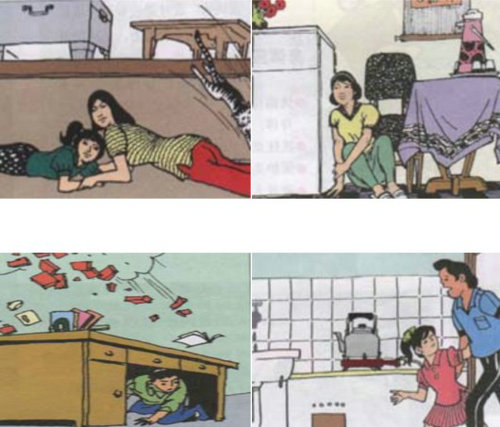 在樓房內(nèi)遇到地震的話,千萬不可在慌亂中跳樓?啥惚茉趫(jiān)實(shí)的家具下或墻角處,也可轉(zhuǎn)移到承重墻較多、開間小的廚房、廁所去暫避一時。因?yàn)檫@些地方結(jié)合力強(qiáng),尤其是管道經(jīng)過處理,具有較好的支撐力,抗震系數(shù)較大。廚房和廁所有食物和水源,可以幫助支撐多一些時間。