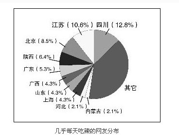 近日,“中國城市食辣報(bào)告”網(wǎng)上發(fā)起調(diào)查,將持續(xù)25天,參與的網(wǎng)友有來自北京、四川、江蘇、廣東、廣西、浙江、上海、湖南、陜西、福建等地,截至5月13日晚上7點(diǎn)33分,廣西的網(wǎng)友占到3.8%排在第五位,而在吃辣頻率的調(diào)查中,幾乎每天吃辣的廣西網(wǎng)友占到3.9%在這項(xiàng)指標(biāo)中,廣西都排在第七位。您喜歡吃辣嗎?41.5%的網(wǎng)友都選擇了“非常喜歡”只有5%的網(wǎng)友選擇“不喜歡”對(duì)于吃辣的頻率,有40.6的網(wǎng)友,幾乎每天都吃辣,在能承受辣的程度上,以吃火鍋時(shí)的辣度為例,44.7的網(wǎng)友選擇了“中辣”,有6%的網(wǎng)友選擇了清湯,就是一點(diǎn)辣都不吃。