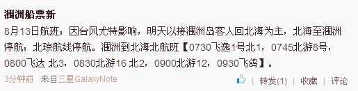 明天上午只開通潿洲島至北海的航班,滯留的游客請(qǐng)盡早撤離!