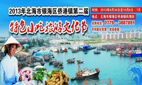 據(jù)報道,北海市為落實自治區(qū)、市、區(qū)有關旅游發(fā)展會議精神,爭創(chuàng)僑港風情街“AAA”景區(qū),進一步發(fā)掘和弘揚僑港鎮(zhèn)特色小吃飲食文化,打響“玩在銀灘,吃在僑港”旅游品牌,加快推進建設北部灣特色旅游名鎮(zhèn)步伐,促進北海市旅游業(yè)的發(fā)展繁榮,定于2013年9月30日至10月6日在僑港鎮(zhèn)舉辦2013年北海市銀海區(qū)僑港鎮(zhèn)第二屆特色小吃旅游文化節(jié)(以下簡稱“小吃節(jié)”)。