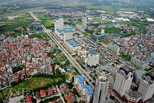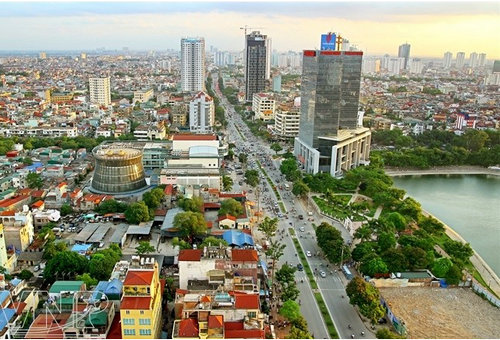河內(nèi)中心的建筑工程與綠樹(shù)板塊相互交錯(cuò)