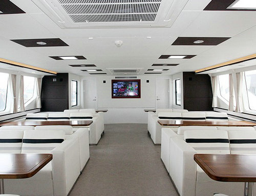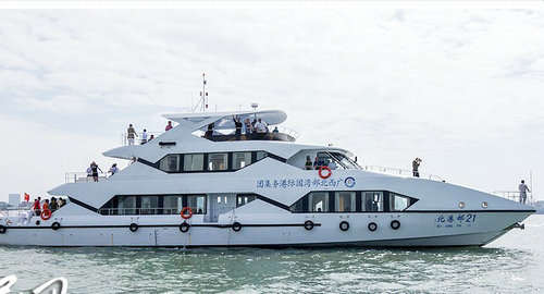 六艘游船當(dāng)中,可載游客50 人的“北港郵31、32 號”游輪,長22.63 米,寬6 米。可載游客150 人的“北港郵21、22 號”游輪,長35 米,寬7.7 米?奢d游客300 人的“北港郵11、12號”游輪,長49 米,寬10 米。游船外觀均為觀光玻璃鋼材質(zhì),船內(nèi)配備商務(wù)自助餐臺、會議投影儀、海景觀光平臺等設(shè)施。