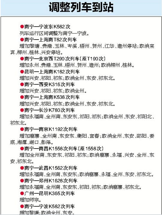 南寧火車站啟動(dòng)新運(yùn)行圖 部分列車停運(yùn)