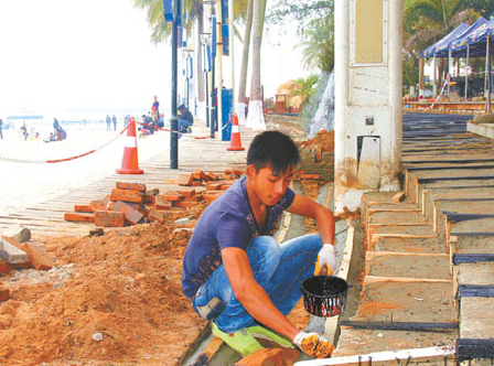 近日,在風(fēng)景秀麗的銀灘景區(qū)內(nèi),工人們正在修復(fù)受損的岸邊木棧道。由于木棧道的部分木板使用年限較長等原因,出現(xiàn)損壞。景區(qū)管理公司對(duì)損壞的木棧道等進(jìn)行維修,以良好的旅游環(huán)境迎接新春各地游客的到來。