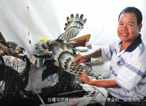 麻雀雖小,五臟俱全。雖然環(huán)境艱苦,廠房簡陋,但白師傅和幾個角雕愛好者每天都在創(chuàng)造奇跡。說到興致上,白師傅告訴記者,他們這些老工藝人,曾在江蘇揚(yáng)州舉辦的全國金鳳凰工藝品交易會、江西南昌舉行的雕刻大師作品展上獲得過多個獎項(xiàng),其中角雕工藝品《鴻運(yùn)當(dāng)頭》、《春潮》還獲得金獎。 在榮譽(yù)面前,白耀華沒有太多的自賞,更多的卻是憂慮。他說,如今,從事這一行的人已屈指可數(shù),更令人擔(dān)憂的是其中沒有年輕人。隨著時間的推移,這門地方獨(dú)有工藝將有失傳的可能。白師傅感慨地說:“這種慢工出細(xì)活的工作,已經(jīng)沒人愿意做了,而且要掌握這一門技藝,起碼要三五年時間。要精益求精,更是一輩子的事情!泵鎸χ找嬲{(diào)零的牛角雕人才,白師傅希望,政府能夠重視這項(xiàng)傳統(tǒng)工藝,盡快把合浦牛角雕申報非物質(zhì)文化遺產(chǎn)。