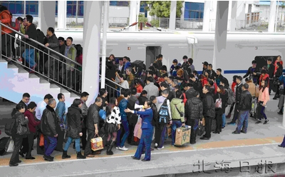 為緩解購票難,從2月16日起,桂林到北海動(dòng)車D8253/4次由原來單列8節(jié)改雙列重聯(lián)16節(jié)開行,旅客由原來的每趟600多人增加到1000多人,目前每趟往返動(dòng)車均滿員,春運(yùn)結(jié)束后北?土饕廊换鸨。為方便旅客從北海出行,鐵路部門正計(jì)劃于上半年增加一趟上午從北海發(fā)出的動(dòng)車。(摘自北海日報(bào)25日訊)