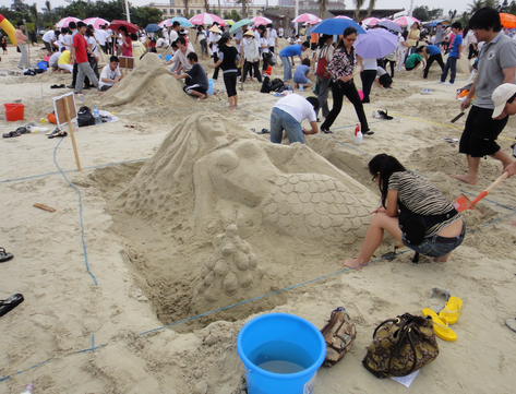 這是繼北海申報國家歷史文化名城工作開展以來后又一盛大的旅游文化節(jié)節(jié)慶活動,每年五一小長假期間舉辦。沙灘已成為一項融雕塑、體育、娛樂、繪畫、建筑于一體的邊緣藝術(shù),其真正的魅力在于以純粹自然的沙和水為材料,通過藝術(shù)家的創(chuàng)作,呈現(xiàn)迷人的視覺奇觀。沙雕藝術(shù)體現(xiàn)自然景觀與人文景觀、自然美與藝術(shù)美的和諧統(tǒng)一,本次活動體現(xiàn)歷史文化名城的豐厚文化底蘊,比賽活動由各大專院校及企業(yè)單位代表組隊參加。