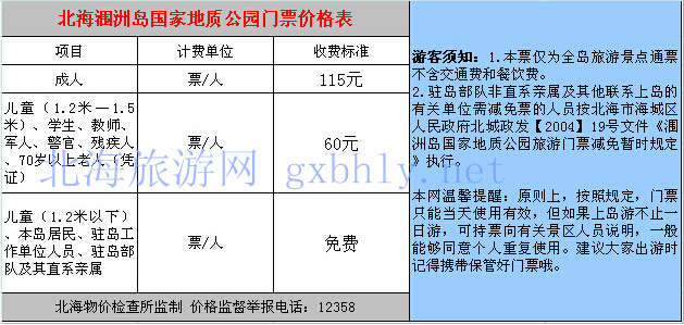 (北海旅行社訊)來自北海旅游局官網(wǎng)12日的消息,經(jīng)自治區(qū)物價局批準,從6月10日起,北海潿洲島火山國家地質(zhì)公園門票價格(包括鱷魚山、地質(zhì)博物館、標志碑廣場、天主教堂、石螺口、五彩灘和滴水丹屏景區(qū)),由原來的90元/人次調(diào)整為115元/人次。