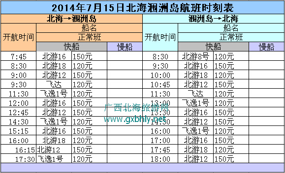 2014年7月15日星期二北海潿洲島航班時刻表: