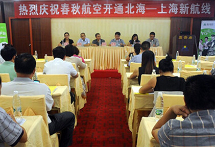 據(jù)報(bào)道,24日上午,春秋航空開通北海至上海新航線通氣會(huì)在北海中玉大酒店順利召開,北海市旅游局副局長李軍、市場(chǎng)科科長林小玲、北海機(jī)場(chǎng)管理公司總經(jīng)理周衛(wèi)東等出席了此次會(huì)議。