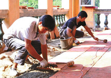 9日上午,記者在文化大院里的德國森寶洋行舊址看到,施工人員在舊址二層鋪設仿古方磚。據現(xiàn)場的施工人員介紹,國慶節(jié)前就已經開始施工,預計半個月左右地磚可鋪設完畢。