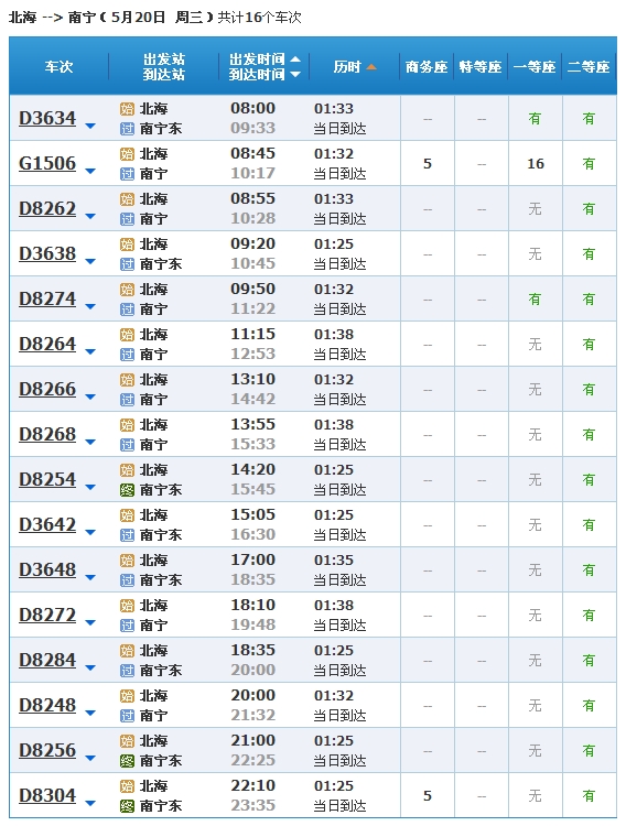 動(dòng)車時(shí)代來(lái)臨了,5月20日高鐵調(diào)圖后,北海至南寧的動(dòng)車增加到16個(gè)班次,來(lái)北海旅游的朋友們也是越來(lái)越方便啦!
