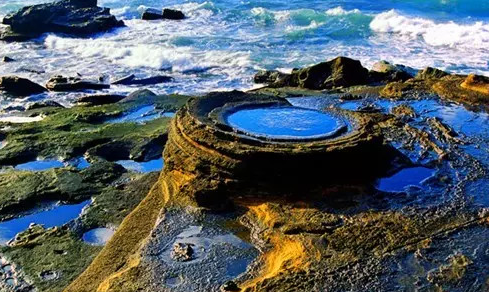 在火山口,到處都是火山殘骸。這些歷史遺留的片言只語,或渾圓或方正,或尖利或駑鈍,形狀不一,但一律豐厚凝重,烏黑發(fā)亮。這些沉默的凝固的語言,寂然躺在沙灘上,見證萬年風雨,潮起潮落! …h(huán)島而行,海蝕崖、海蝕洞、海蝕龕、海蝕溝、海蝕臺、海蝕柱、海蝕窗、海蝕蘑菇等地貌紛紛呈現(xiàn),奇形怪狀,千奇百怪。在欣賞絕壁攬勝、龍宮探奇、平臺聽濤、百獸鬧海這些景觀時,我在驚嘆中,輕輕顫栗:堅硬的是熔巖,柔軟的是海水,堅硬卻敵不過柔軟一次次的沖刷,開裂,剝落,瓦解,消散,不知所蹤……神奇而可怕的大自然力量!
