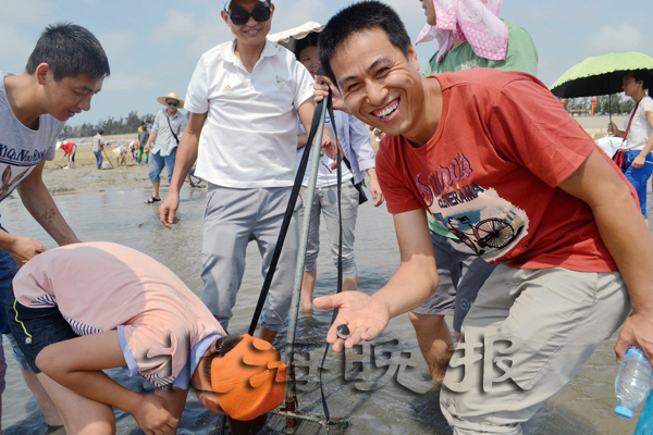 “知道有挖螺大賽后,我們?nèi)叶际峙d奮,早早就開始做好了參賽的準(zhǔn)備!笔忻駝⑾壬鷮τ浾哒f,自己小時(shí)候經(jīng)常跟隨父母到海邊挖螺,長大后就沒有挖過了,F(xiàn)在帶著自己的孩子挖螺,自己又找回了童年的感覺。