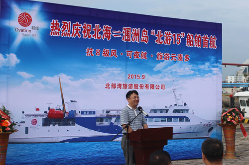 北海旅游發(fā)展委員會、北海市公安局、北海海事局、北海市港務(wù)管理局等相關(guān)單位領(lǐng)導(dǎo)及旅游企業(yè)代表參加首航儀式,并參加了“北游15”大型觀光客船的首航體驗(yàn)之旅。