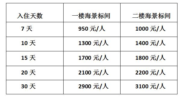 7.由于酒店過冬養(yǎng)老項目價格比較實惠。春節(jié)期間北海酒店房間比較高,本酒店春節(jié)正常房間價格為700元/間/天。如春節(jié)參加酒店過冬項目,需要加收房費600元/人,一間房加收1200元。