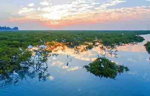 一定要到金海岸紅樹林,看那一片海洋衛(wèi)士,感受生命的強大,戴上草帽,拎上小魚簍,拿上小鏟子,實實在在當一次漁民,體驗趕海樂趣。