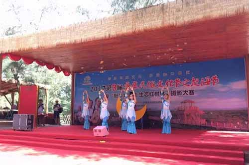 隨后,由織網(wǎng)比賽參賽選手們分別獻(xiàn)上的兩支民俗舞蹈將氣氛帶至高潮,現(xiàn)場(chǎng)不斷響起歡笑聲。精彩紛呈的表演結(jié)束后,主持人宣布“魅力金海灣·生態(tài)紅樹林”攝影大賽開機(jī)儀式落下帷幕,而今天的百人織網(wǎng)大賽則正式開始了。