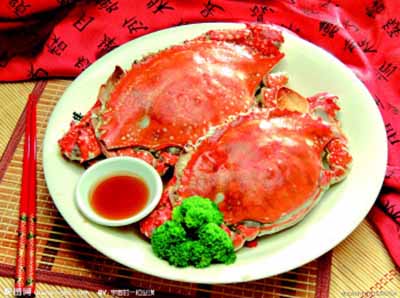 梭子蟹最常見的燒法有兩種:家蒸和煮蘿卜湯,酒店點擊率最高的是家蒸。把蟹洗凈、斜刀切片、再切小股、蟹腳切段。盤內(nèi)放入豆腐;蚯埦,再將切好的蟹放入,加姜片、香菇片、蔥白段、老酒、醬油、味精、雞油,入籠蒸3至5分鐘。