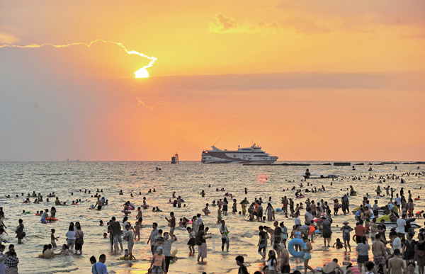 廣西北海旅行社9月7日訊 云霞落日,微風吹拂,鄧先生與妻兒在銀灘海邊玩沙逐浪,幸福的笑聲隨著海風四處蕩漾開來。