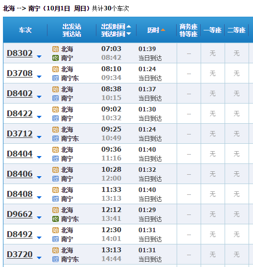 廣西北海旅行社網(wǎng)9月26日訊 根據(jù)南寧鐵路局的最新通知,2017年9月29日—10月9日期間,南寧至北海將加開4趟動(dòng)車組,滿足國慶假期市民游客出行的需要。