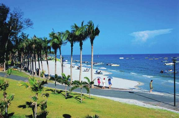 北海銀灘:沙灘均由高品位的石英砂堆積而成,在陽光的照射下,潔白、細膩的沙灘會泛出銀光,故稱銀灘,北海銀灘以其“灘長平、沙細白、水溫凈、浪柔軟、無鯊魚”等特點,而被稱為“中國第一灘”。