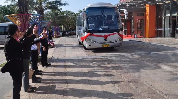 廣西北海旅行社12月7日訊 12月5日,在完成為期一周的試運(yùn)行后,遷入萬(wàn)匯·海珍城新址的北海機(jī)場(chǎng)城市候機(jī)樓正式揭牌運(yùn)營(yíng)。當(dāng)天10時(shí)20分,披戴紅花的首趟機(jī)場(chǎng)大巴在一陣喜慶的鞭炮聲中,啟程開(kāi)向福成機(jī)場(chǎng)。北海機(jī)場(chǎng)副總經(jīng)理周衛(wèi)東、萬(wàn)匯·海珍城總經(jīng)理徐建元等領(lǐng)導(dǎo)出席并為城市候機(jī)樓啟用剪裁揭幕。