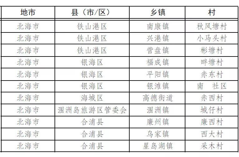 2017 年自治區(qū)級生態(tài)村名單(北海)