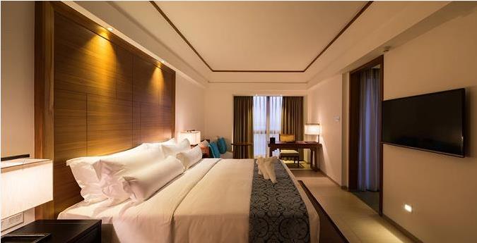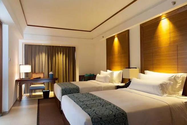 布置考究的客房353間,可將城市美景和海景盡收眼底?头亢廊A大床、全棉被單按五星級(jí)標(biāo)準(zhǔn)配置,并有多種枕頭可選,舒適的環(huán)境滿足客人高質(zhì)量的睡眠,大屏液晶數(shù)字電視、寬敞浴室及別具風(fēng)格的洗浴用品。