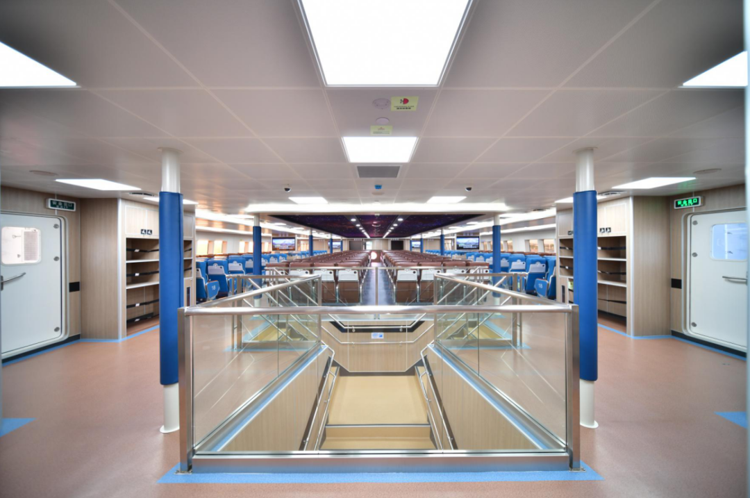 并設(shè)置殘疾人座椅、衛(wèi)生間和母嬰室,還專門(mén)設(shè)置寵物間,以方便游客帶著愛(ài)寵上島游玩。艙內(nèi)的樓梯還專門(mén)設(shè)置兒童扶手,