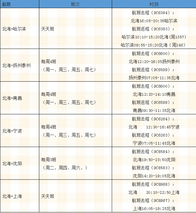 春秋航空開(kāi)通哈爾濱,揚(yáng)州,寧波,沈陽(yáng),南昌到北海往返航班