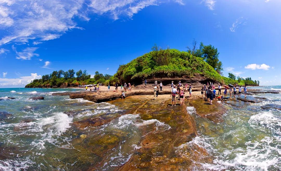 潿洲島南灣鱷魚山景區(qū)是潿洲島最瑰麗、最精華的部分,總面積3.8平方公里,主要包括鱷魚山、五彩灘、紅色景區(qū)以及南灣海域,匯聚了中國最典型的火山機(jī)構(gòu)、中國最豐富的火山景觀以及中國保存最完整的多期火山地質(zhì)遺跡,是火山演化過程中的天然博物館,以典型的火山地質(zhì)遺跡,獨(dú)特的海蝕熔巖地貌景觀以及豐富的生態(tài)旅游資源聞名于海內(nèi)外。每一個(gè)前行的足跡