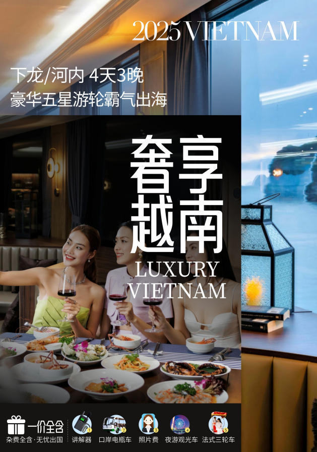3、用餐:全程用餐7正3早,4正*餐標(biāo)30元/正+1正豪華游輪自助午餐+下午茶+1正特色澳洲龍蝦宴+1正越南特色簸箕餐