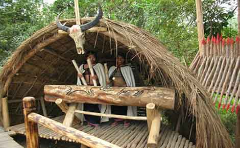 在這里,多種民族的民風(fēng)民情交融一起,讓人大飽眼福:既有蛋家居民的水上生活及男婚女嫁的本土習(xí)俗,也有布朗族人的“舔火炭”、“自焚”絕技。還有土人的樹上的生活方式,土家人的“食土食草”、“喝生血”、“活吃動物”的野性,原始森林部落的“水牢”“旱牢”酷刑,這些神秘而奇特的稀有民族生存和生活方式,都將帶給你強(qiáng)烈的視覺刺激和心靈震撼。