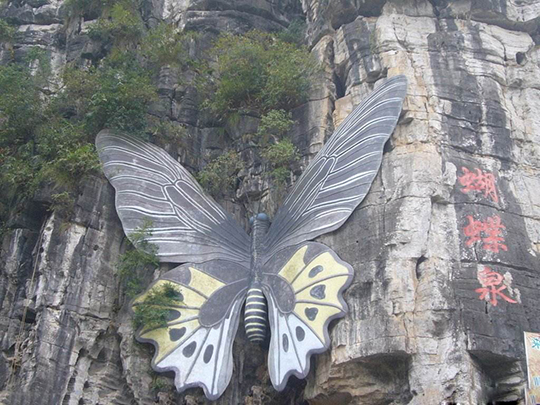 蝴蝶泉觀賞園:位于十里畫廊中部,是由一些愛好者投資,依自然地勢精心修建,與蝴蝶生存相似的自然生態(tài)環(huán)境。游客可在園內(nèi)與蝴蝶同嬉同樂,觀賞五彩繽紛、天女散花般的萬飛舞美景,體驗(yàn)人與自然和睦相處的奇妙感覺。園內(nèi)設(shè)有蝴蝶公園,蝴蝶保育區(qū)、蝴蝶科教展室、蝴蝶工藝品廠,觀園索道等。