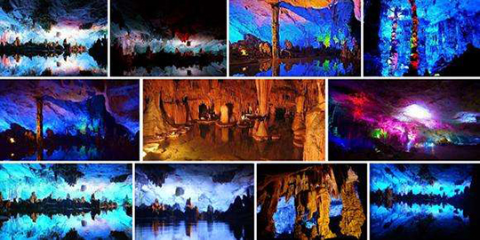 洞內(nèi):洞內(nèi)天然形成密集的鐘乳石,它們的線條豐富流暢,有雄偉廣闊之勢。加以燈光陪襯。創(chuàng)造出各種意境,使羅列疏密有致的石柱、石筍、石鐘乳、石旗、石幔成為一件件藝術(shù)品,給人豐富多彩的想象空間和藝術(shù)享受,整個巖洞恰似一座大自然的藝術(shù)之宮。在蘆笛巖洞內(nèi)不僅能感受到大自然鬼斧神工造就的形態(tài)美,同時,還能感受到園林工作者賦予它的色彩美和意境美,仿佛置身于一座藝術(shù)殿堂。